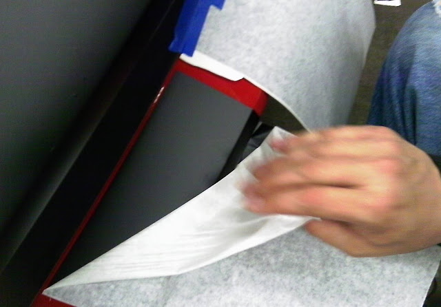 6. Here's the pro trick, carefully peel the application tape off the graphic. Do not stretch the materiel.